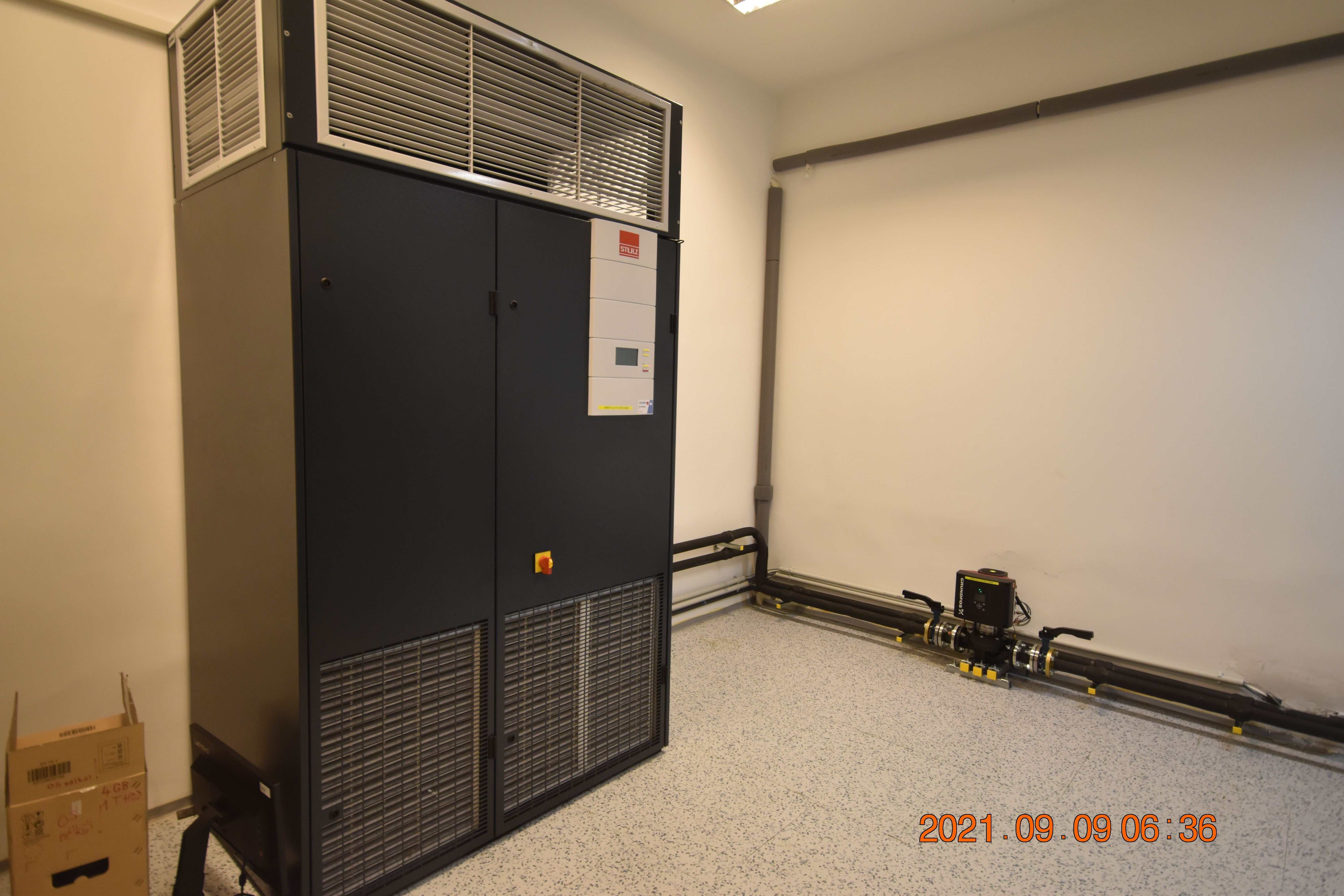 A projekt keretében beszerzett nagy számítási kapacitású szerver és adattároló, valamint a működtetéséhez szükséges szünetmentes tápegység és géptermi klímaberendezés:
