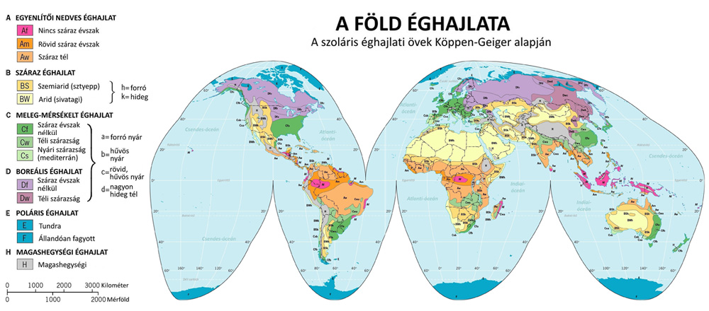 A Föld éghajlatának osztályozása Köppen szerint