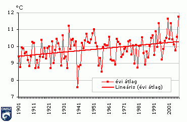 2007-ben az országos évi középhõmérséklet 11,75 °C volt, ami 1,7 °C-kal meghaladta az 1971-2000-es 30 éves átlagot (1. ábra).