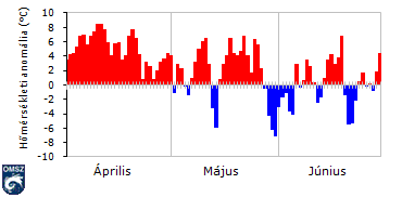 Az évben az országos havi középhõmérséklet ebben a hónapban volt legközelebb a szokásoshoz. Az átlag körüli ingadozás során a legnagyobb pozitív eltérés 19-én adódott (+6°C), míg a legnagyobb negatív eltérés 4-én jelentkezett (-5°C). Zabar állomáson ebben a hónapban is született napi rekord: június 14-én 1,3°C-os minimumhõmérsékletet regisztráltunk.