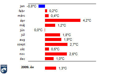 Országos viszonylatban a napi középhõmérséklet mindvégig átlag felettinek adódott, a legnagyobb eltérés a +8°C-ot is meghaladta.