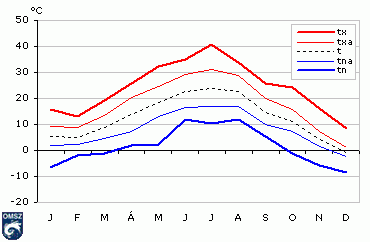 A hõmérsékleti küszöbnapok száma tavaly jelentõsen eltért a sokévi átlagtól: a meleg küszöbnapok száma jóval meghaladta a normálértékeket, a hideg küszöbnapok száma pedig nagymértékben elmaradt azoktól. 2007-ben országos átlagban 17 nap volt téli, 11 nappal kevesebb mint a szokásos, és 1 nap zord, ami 10 nappal maradt alatta szokásos értéknek. Nulla fok alatti hõmérséklet 73 napon fordult elõ - a 30 éves átlagérték 97 nap. 2007-ben nyári nap 91 volt átlagosan, ami 22 nappal több, mint a szokásos. A hõségnapok száma 39 volt, ami 23 nappal haladja meg az átlagos 16-ot. Tavaly átlag 8 forró napunk volt, ami nyolcszorosa az 1961-1990-es idõszak átlagának.