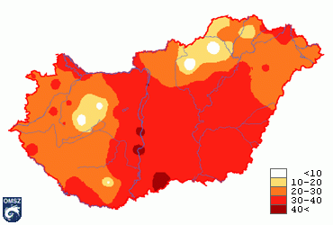 közel 3 fokkal melegebb volt a sokévi átlagnál, középhõmérséklete országos átlagban 22,8°C-nak adódott. Átlagosan a napi középhõmérséklet a hónapnak mindössze 4 napján maradt el a normáltól, július túlnyomó többségében a szokásos napi középértéket 4-8 fokkal meghaladó hõmérsékleteket regisztráltak. A hónap során a kánikula miatt többször rendeltek el hõségriadót, mégis mindössze egy melegrekord született: Budapesten július 22-én 36,9 Celsius fokot mértek, és ezzel megdõlt az 1998. július 22-én mért 36 fokos akkori rekord.