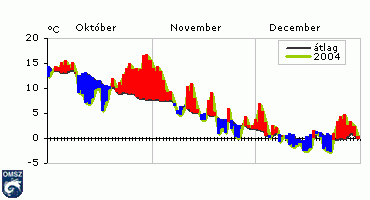 középhõmérséklete összességében a sokéves átlagnál több mint egy fokkal magasabbnak adódott, amely nagyrészt a hónap utolsó dekádjában tapasztalható szinte nyáriasan meleg idõjárással, a november elsõ hetéig tartó "vénasszonyok nyará"-val magyarázható.