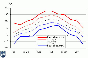 Hazánk éghajlatát globálisan a jelentős évi hőmérsékletingás jellemzi. A hőmérséklet idõbeli alakulása, az egyes évszakok, hónapok időjárása nagyon változékony.