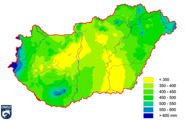 Az éves csapadékösszeg hazánk területén 500-800 mm között szokott alakulni, 2011-ben viszont többnyire 350-600 mm csapadék hullott (12. ábra). A legtöbb csapadék az Alpokaljára jutott, de kisebb foltokban a Mecsekben, illetve a Tiszántúlon is megjelentek nedvesebb időjárású területek. A legszárazabb az ország középső régiója volt, a legalacsonyabb éves csapadékhozamot, 251 mm-t Tordas állomásunkon mértünk. Ennél alacsonyabb éves összegeket 1901 óta csupán a 2000-es szárazság során, illetve 1961-ben jegyeztünk fel.