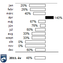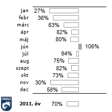 Viharos napok száma a normál százalékában,Budapest-Pestszentlőrincen 2011-ben