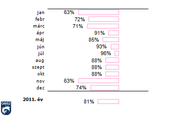 A szélsebesség havi átlagai Budapest-Pestszentlőrincen 2011-benaz 1971-2000-es normál százalékában