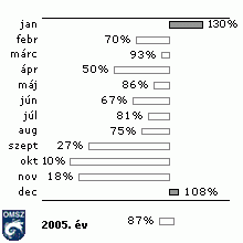 A szélsebesség havi átlagai Budapest-Pestszentlõrincen 2005-ben az 1961-90-es normál százalékában