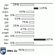 A szélsebesség havi átlagai Budapest-Pestszentlõrincen 2004-ben az 1961-90-es normál százalékában