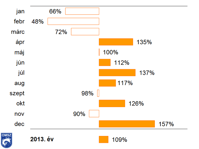 a legnagyobb pozitív anomália decemberben adódott (157%).