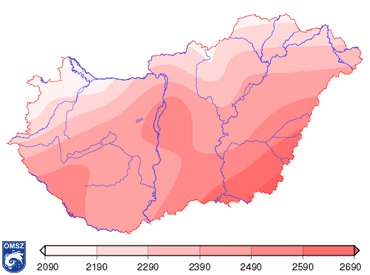 A napsütéses órák száma hazánk területén általában 1750 és 2050 óra között változik. A 2012-es évben ennél azonban jóval nagyobb értékek jelentkeztek az