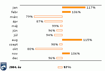 A napsütéses órák havi összegei 2004-ben az 1961-90-es normál százalékában