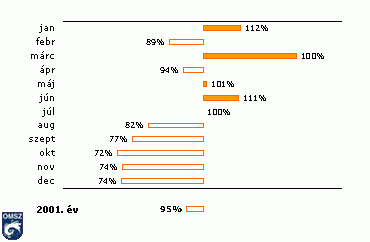 A napsütéses órák havi összegei 2001-ben az 1961-90-es normál százalékában