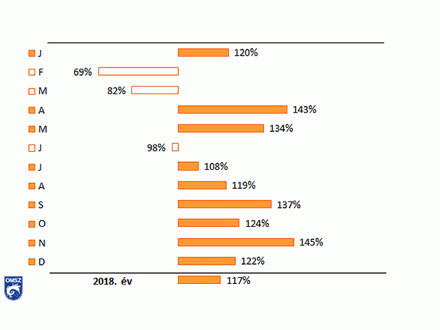 Országos átlagban 17 %-kal több napsütéses órát élvezhettünk 2018-ban, mint az 1981-2010-es sokévi átlag (normál: 2002 óra; 2018: 2340 óra). Ezúttal május bizonyult a leginkább napfényesnek a hónapok közül, de a vártnál legnagyobb eltérést novemberben és áprilisban tapasztaltuk (25. ábra), mivel a sokévi átlagnál 40%-nál többet összegeztük ekkor az országban. A normál időszakhoz képest szinte minden hónapban magasabb volt a napsütéses órák száma, csupán a februárra és márciusra vonatkozó érték maradt el jelentősebben az ilyenkor megszokott napfénytartam értékétől (26. ábra).