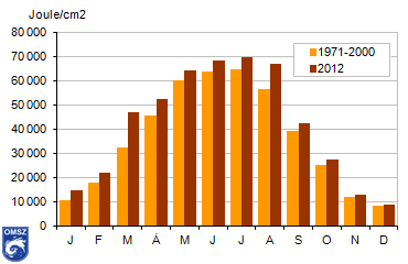 összefüggést mutat a napfénytartammal, így nem csoda, hogy a 2012-es, május-augusztusi időszak a napsütéses órák számához hasonlóan itt is kimagasló