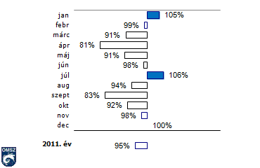 A relatív nedvesség havi átlaga Budapest-Pestszentlőrincen2011-ben az 1971-2000-es normál százalékában