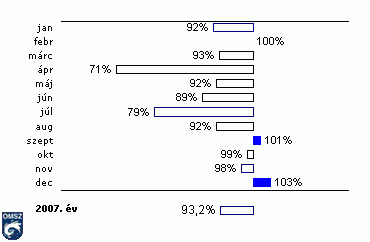 A relatív nedvesség 2007. éves értéke valamivel átlag alatt alakult. Mindössze 2 hónapban regisztráltak átlagot meghaladó nedvesség értékeket.