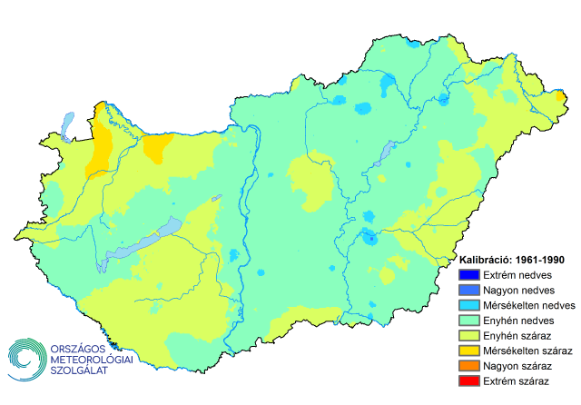 A 2019-es ősz összességében átlagos csapadékú volt, októberre viszont az ország egyes részein súlyosabb aszály alakult ki, amit jól szemléltet a háromhavi SPI októberi eloszlása (12. ábra). Ez alapján elmondható, hogy a 2019. augusztus-októberi időszak Magyarország legnagyobb részén száraz volt. Enyhén csapadékos területek elsősorban az Alföld délnyugati tájain és az Északi-középhegységben voltak ebben a három hónapban. Komárom környéke és az Őrség mérsékelten/nagyon száraz volt. Szabolcs-Szatmár-Bereg megyében nagy területen extrém szárazság uralkodott nyár végén, ősz elején.