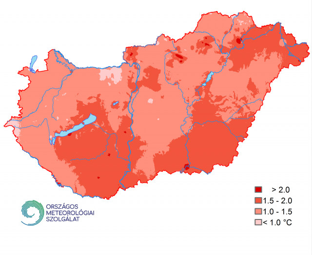 Hazánk teljes területén az 1981–2010-es átlag feletti volt a 2020-as ősz középhőmérséklete (2. ábra) Az anomália értéke a déli és az északkeleti országrészben 1,5-2 °C-nak adódott. Kisebb körzetekben a normától vett eltérés meghaladta a 2 °C-ot. A nyugati országrészben, az Őrségben, továbbá északon, Komárom-Esztergom megye síksági tájain az éghajlati normáltól vett eltérés jellemzően 1,0 °C alatt maradt. Az ország nagy részét 1-1,5 °C közötti anomália jellemezte.