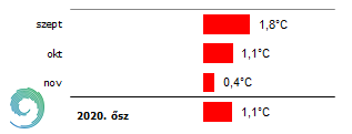 A 2020-as ősz középhőmérsékletének eltérése a sokévi átlagtól