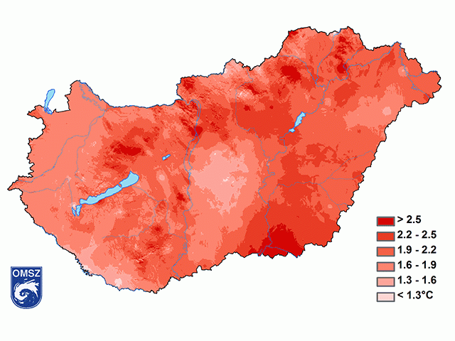 Mindhárom hónap a sokéves átlag felett alakult. A szeptember 1,5°C-kal, a november pedig 2°C-kal volt melegebb az ilyenkor megszokottnál (3. ábra). Az őszi hónapok közül októberben adódott a legnagyobb, 2,4°C-os anomália, és ezzel a 7. legmelegebb októbert tudhattuk magunk mögött. A teljes őszi időszak 2°C-kal meghaladta az ilyenkor szokásos értéket, és ezzel a 2. legmelegebb ősz múlt el 1901 óta.