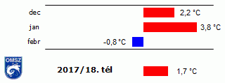 2017/2018 tele a 18. legmelegebb tél 1901 óta; a leghidegebb téli időszak 1939/40-ben volt, az eddigi legmelegebb periódust pedig 2006/07-ben figyelhettük meg. Az évszak hónapjait tekintve 2018 januárja a 6. legmelegebb január volt az elmúlt 117 évben, míg 2017 decembere a 23., 2018 februárja pedig a 77. legmelegebb december és február (I. táblázat).
