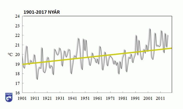 Az országos nyári középhőmérsékletek 1901 és 2017 között (interpolált adatok alapján)