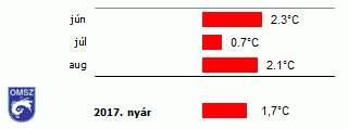 A 2017-es nyár középhőmérsékletének eltérése a sokéves átlagtól