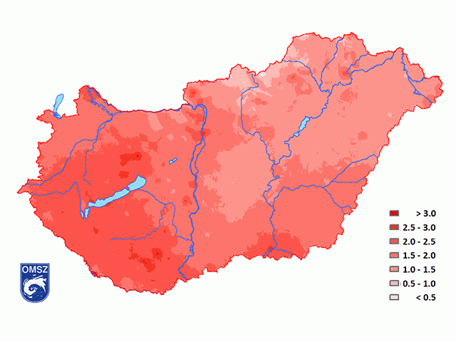 Mindegyik nyári hónap jelentősen melegebbnek bizonyult a normálnál (3. ábra). A június és az augusztus az 1981-2010-es sokévi átlagnál több mint két fokkal volt melegebb, míg júliusban a pozitív anomália 1 °C alatt maradt.