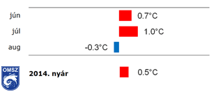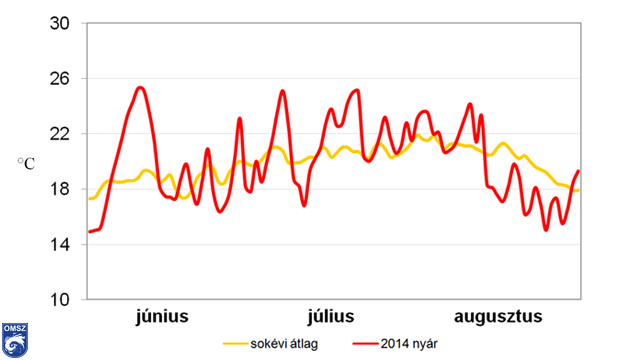 A következőkben összefoglaljuk, hogyan változott a középhőmérséklet hazánkban 2014 nyarán.