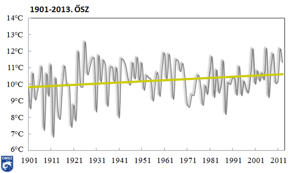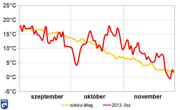 Az elmúlt 113 év adatait tekintve a 2013 októberében és novemberében jegyzett havi középhőmérsékletek előkelő helyet foglalnak el az elmúlt évek őszi hónapjainak rangsorában: október a 12., november pedig a 14. legmelegebb 1901 óta. Összességében az idei ősz a 20. legmelegebb ősznek adódott.