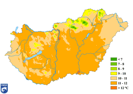 A tavaszi középhőmérséklet az ország nagy részén 10-12°C között alakult idén. Hűvösebb csak hegységeinkben volt, itt 8-10°C-os értékek is kirajzolódtak térképünkön (1. ábra), sőt a Mátra, a Bükk és a Zempléni-hegység legmagasabb pontjain a 7°C-ot sem érték el. A legmelegebb Budapest és Szeged volt, ezekben a városainkban a 12°C-ot is meghaladta az évszakos átlaghőmérséklet.