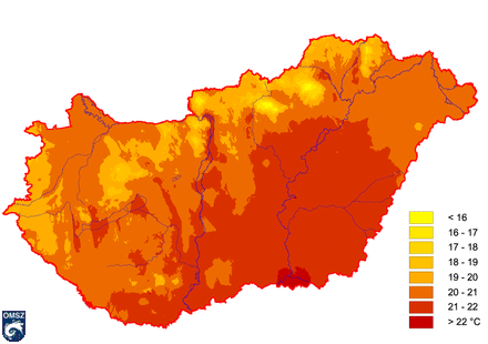 Az idei nyár középhõmérséklete országszerte többnyire 20 és 22 °C között változott (1. ábra). Hidegebb csupán hegységeinkben fordult elõ, a Mátrában a legalacsonyabb érték 16 °C alatti volt. A legmelegebb Szeged térsége volt, itt a középhõmérséklet a 22 °C-ot is meghaladta.