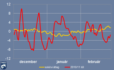 A következőkben összefoglaljuk, hogyan változott a havi középhőmérséklet a 2010/11-es tél során.