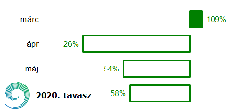 Országos átlagban 2020 tavaszán 83,0 mm csapadék esett, ami az 1981–2010-es átlag alig fele, 58%-a. A március eleji nagyobb csapadékoknak köszönhetően a tavasz első hónapja az átlagnál kissé (+9%) csapadékosabb volt, majd áprilisban a szokásos csapadékmennyiség mindössze 26%-a, májusban 54%-a hullott (8. ábra).