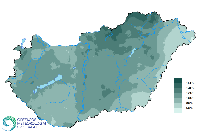 A 2019-es ősz csapadékösszege a sokéves (1981-2010-es) átlag százalékos arányában kifejezve