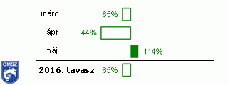 A 8. ábrán jól látható, hogy a tavasz első két hónapja száraznak adódott, a regisztrált mennyiség márciusban még a normál 85%-a volt, de áprilisban már 44%-a volt csupán a szokásos csapadékmennyiségnek. Májusban a megszokottnál 14%-kal több csapadék hullott. A teljes tavaszi időszak alatt 15%-kal kevesebb csapadék volt, mint általában.