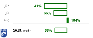 Ahogy 8. ábránkon is jól látható, jelentős csapadékhiánnyal telt a június és július hazánk területén. Júniusban a megszokott mennyiség mindössze 41%-a hullott le, mellyel az idei június a 6. legszárazabb június lett 1901 óta (II. táblázat). A szárazság júliusban is folytatódott, ekkor a normál 66%-át jegyeztük országos átlagban. Az augusztusi átlag a normál 104%-ának adódott, ugyanakkor megjegyezzük, hogy az ország egyes tájegységei között jelentős különbségek alakultak ki, melyről bővebben a 2015. augusztus havi visszatekintőben olvashatnak. Összességében az idei nyár szárazabb volt a megszokottnál, a normál 68%-ával ez volt a 96. legcsapadékosabb, azaz a 20. legszárazabb nyár hazánkban 1901 óta.