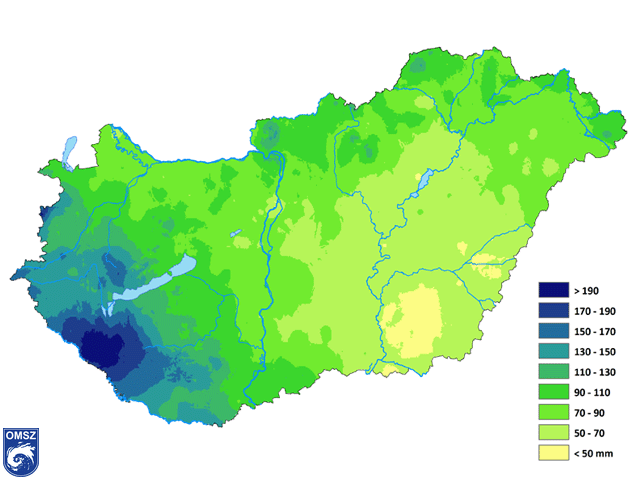 Az idei télen a legcsapadékosabbnak a délnyugati határszél bizonyult: arrafelé helyenként közel 200 mm csapadék hullott a tél folyamán. Másutt azonban jóval kevesebb csapadék hullott, kelet felé haladva csökkenő tendencia látható. A legkevesebb csapadékot a DK-i területek kapták, arrafelé néhol az 50 mm-t sem érte el a téli mennyiség.