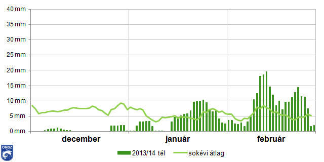 Az idei tél szokatlanul magas hőmérsékletekkel telt, az elmúlt 113 év 3. legenyhébb telét jegyeztük, ráadásul a csapadék eloszlása is rendszertelen volt: az évszak összességében átlagos csapadékmennyiséget hozott, ám december rendkívül száraznak adódott.