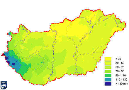 Az elmúlt rendkívül száraz ősszel csupán hazánk délnyugati részére érkezett viszonylag több, 100 mm fölötti csapadék (6. ábra). A térképet vizsgálva elmondható, hogy a csapadék területi eloszlása jó közelítéssel északkelet-délnyugat irányú növekedést mutatott, a Dunántúl tehát valamivel több csapadékot kapott, mint az alföldi területek.