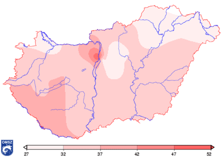 A globálsugárzás értékei 27 és 52 kJ/cm2 között alakultak. Az ország legnagyobb részén 32-37 kJ/cm2 volt jellemző. Ettől magasabb