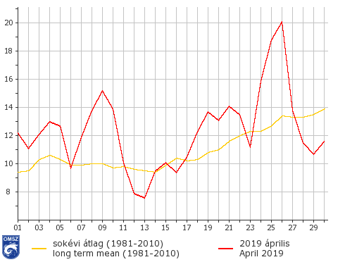Az április is melegebb volt a szokásosnál, így sorozatban a 13. hónapot zártuk a sokéves átlag felett. Csapadék tekintetében átlag közelében alakult a hónap.
