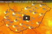 Az elmúlt bő egy hét csapadékmentes, szép, őszi időjárását okozó anticiklon szombaton fokozatosan leépül térségünk felett, és egyre inkább a nyugat-európai ciklonrendszer hatása válik meghatározóvá. Már szombat délután is súrolhatja egy gyenge hidegfront az északi, északkeleti megyéket, de az igazán markáns hidegfrontra vasárnapról-hétfőre virradó és éjszaka és hétfőn napközben kell számítani. Jelentős csapadékra és erős, olykor viharos szélre van kilátás. |
