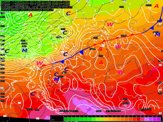 2011.06.23. 18 UTC szinoptikus helyzet.