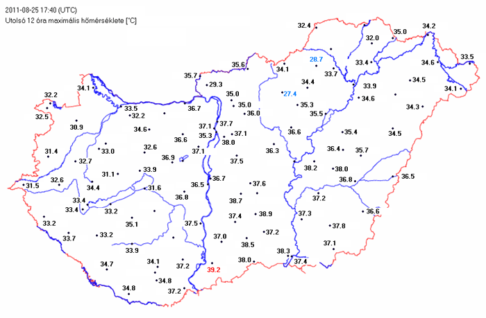 A 2011-es nyár hőmérsékleti maximuma is ezekhez a napokhoz köthető, hiszen a 2011. július 10-én Túrkevén mért 39.1 fokot, amely augusztus végéig a nyári