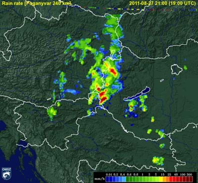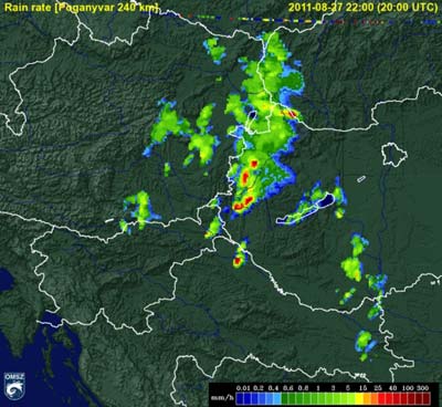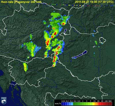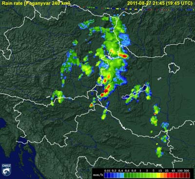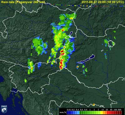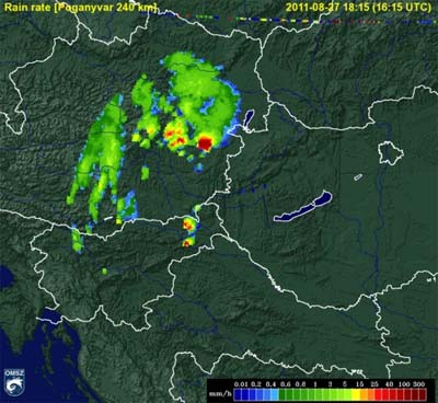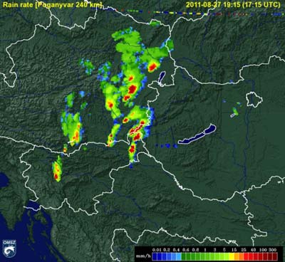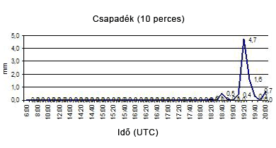 északnyugati részén heves záporok, zivatarok pattantak ki. Sopron környékén, a határon kívül valószínű, hogy szupercella alakult ki, amely végig az