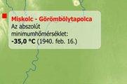 2021. február 13-án a Bükk-fennsíkon található egyik töbörben (speciális mikroklímával rendelkező mélyedés) -35,5 fokig süllyedt a hőmérséklet, az érvényben lévő magyarországi abszolút hidegrekord azonban továbbra is -35 fok, amit 1940. február 16-án regisztrált a Meteorológiai és Földmágnességi Magyar Királyi Központi Intézet Miskolc-Görömbölytapolcán, vagyis mai nevén Miskolctapolcán. |