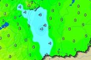 November 9-én, hétfőn még az ország középső és északi, északkeleti részein nagy területen kiszakadt a rétegfelhőzet, ez pedig nyomot hagyott a hőmérsékleti térképen is. A napos tájakon délután 13, 15 fok is előfordult, máshol inkább a 6, 8 fok volt a jellemző. Éjjel a kezdetben derült helyeken gyorsan zuhant a hőmérséklet, így megint volt fagy, de hajnalban -1, -2 foknál nem mértünk hidegebbet. |